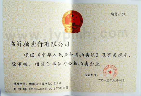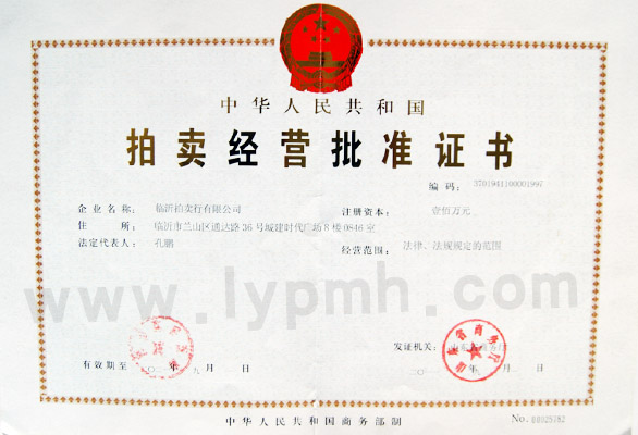 拍賣經(jīng)營批準(zhǔn)證書